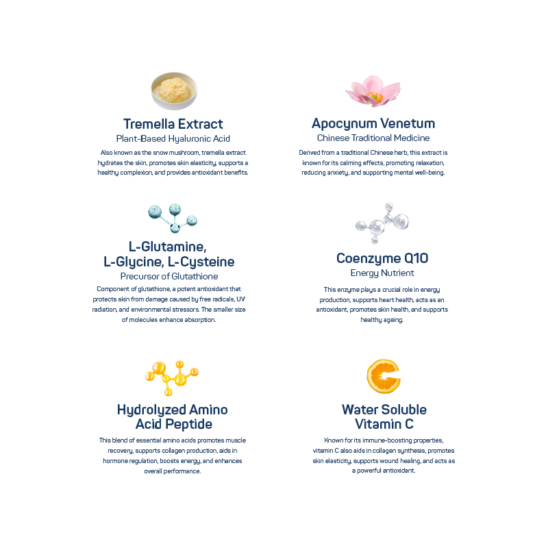 Formulated with Tremella (Snow Mushroom) for deep hydration and glow support, and Apocynum Venetum to help calm the mind for a more restful night—so you wake up feeling refreshed and looking radiant.
